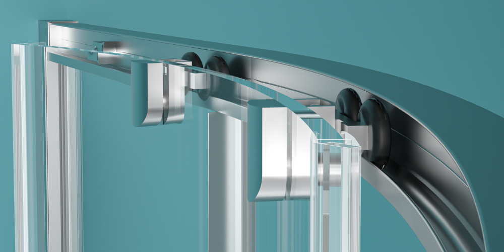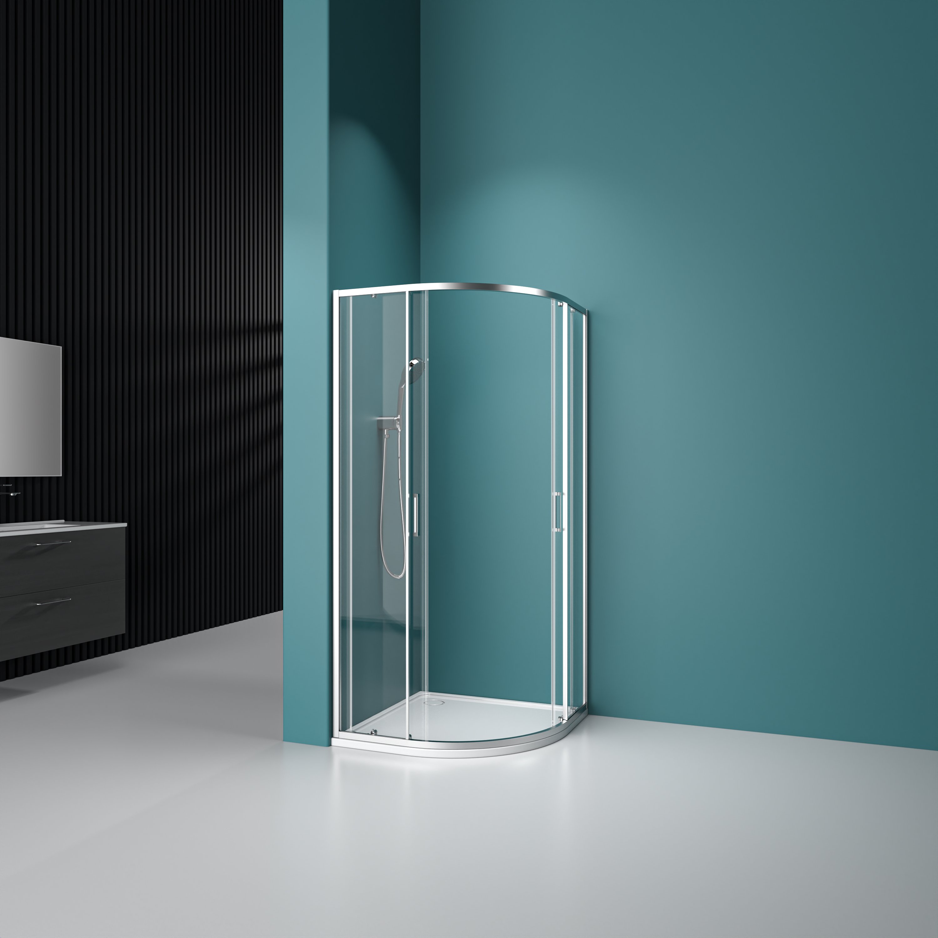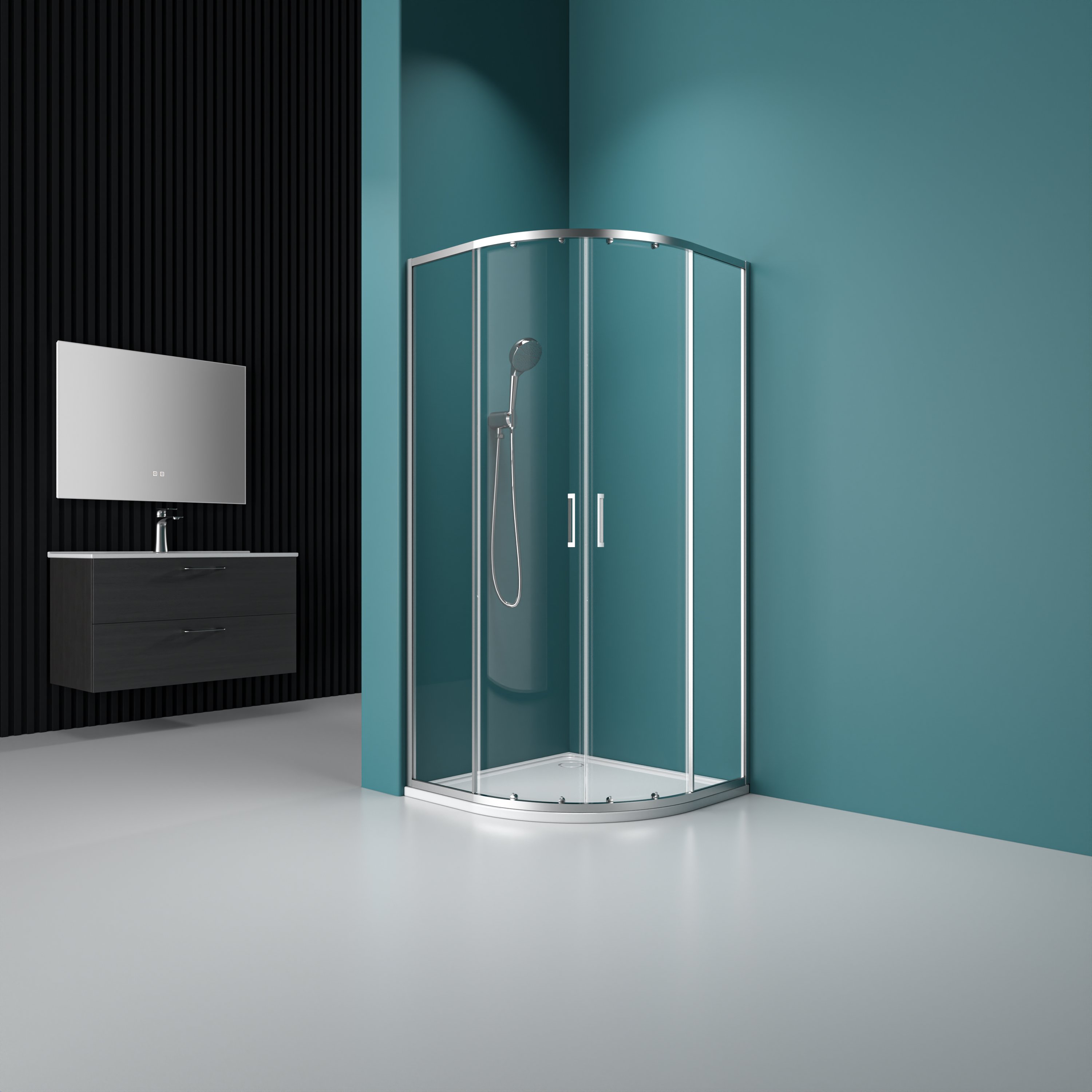 A super sleek quadrant shower enclosure frameless double sliding door, the curved Ravenna range features a stylish minimalist design, and Finished with polished aluminum and stainless steel fitting which will sit beautifully in the corner of any style of bathroom.
